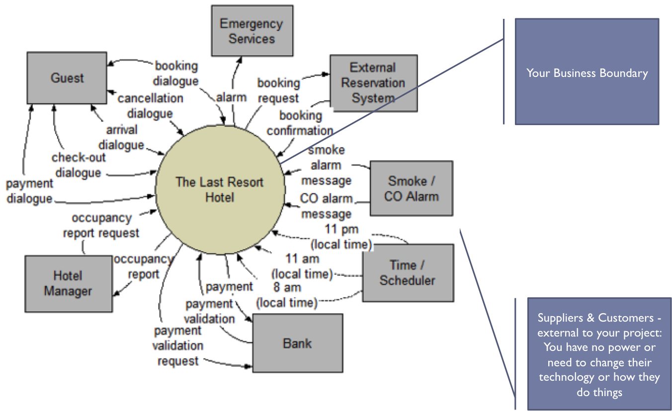 - Step 3 – The Context Diagram. Look at the area under study as an outsourced business, with Suppliers (of data) and Customers (recipients of data/information/results).